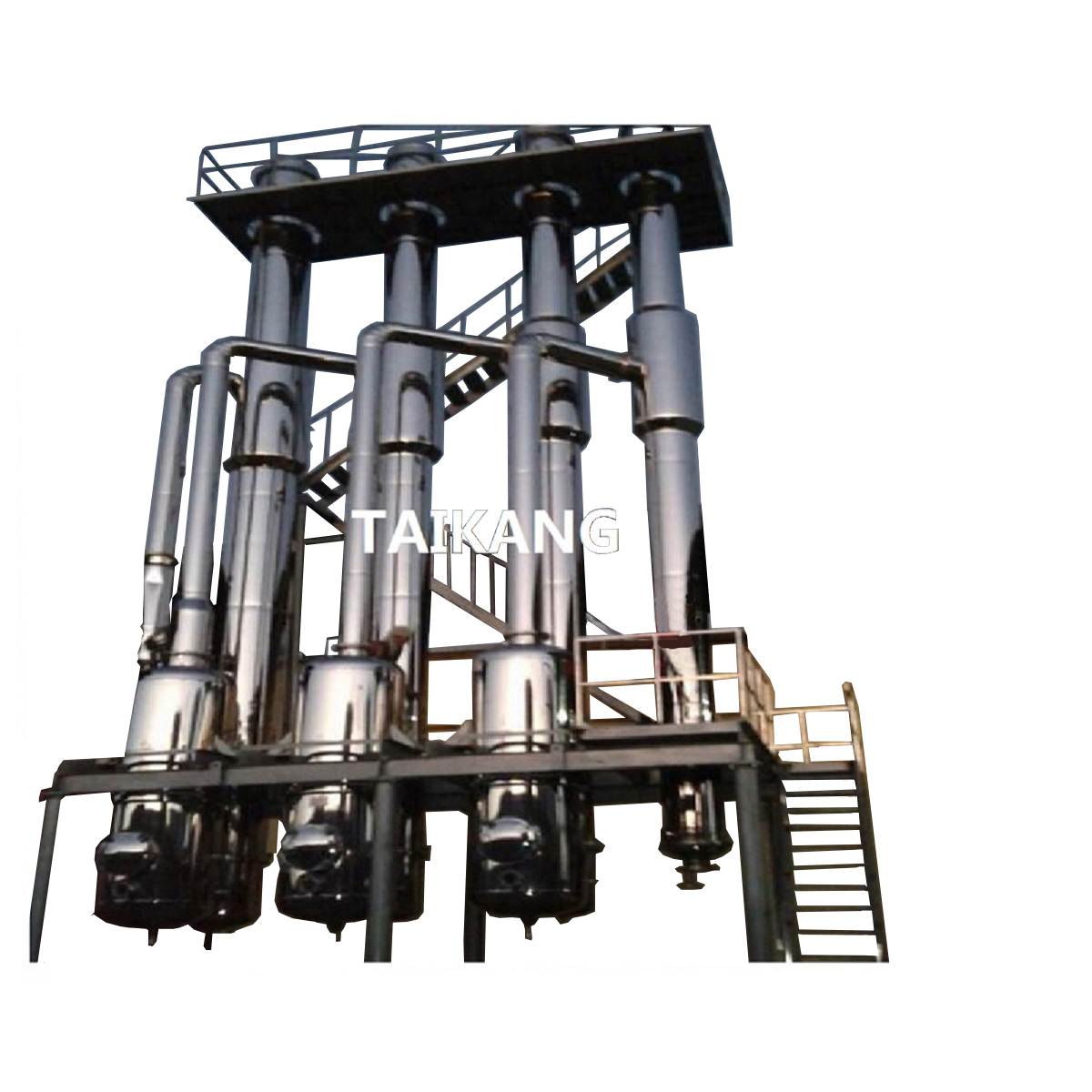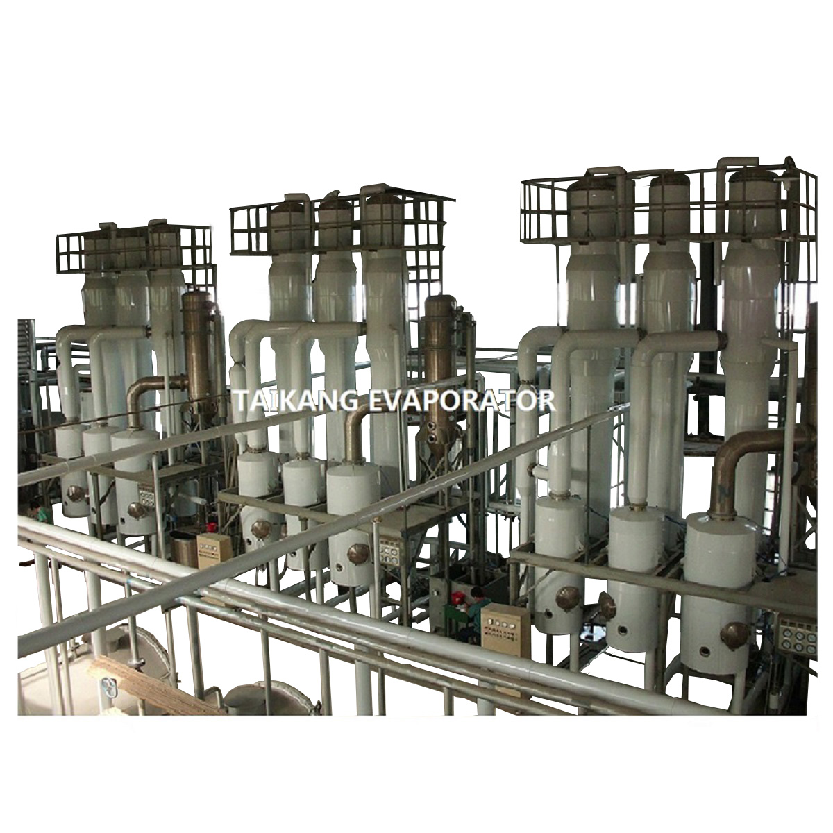Triple-effect falling film evaporators mainly adapts in continuous evaporation and concentration under low temperature,Can process milk,glucose,starch,xylose,pharmaceutical,biological engineering,environmental protection,waste liquid recycling etc; Especially suitable for processing the material with character of heat sensitive,viscosity and foamability. The machine has characteristics of high heat transfer efficiency,material heating In short time etc.